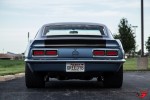 The body of the car looks great, but good paint can only take you so far. The Camaro’s stance and wheels give it the pop it needs and brings everything together in a nice package. Boze Forged provided the 3-piece rollers with their mesh-style design named ProTouring. The centers are finished in a brushed satin finish and the polished lips are standard issue. They measure 18” tall and 9” wide in the front. He wanted to give it a more aggressive stance with wide rear tires, so he had them cut 3″ wider in the back. The wheels are wrapped in BF Goodrich G-Force Rivals and he plans to upgrade to the Rival II’s on his next tire change. The rear wheels are wrapped in a fat 335/30R18 tire which translates in ‘Murican terms to approximately 13.2” of contact with the pavement.