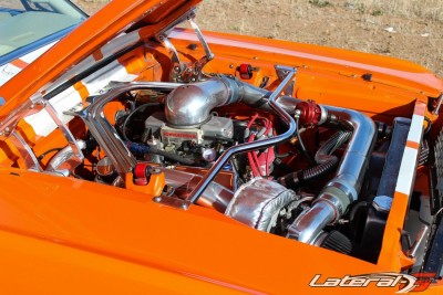 Mated to the engine is a T-5 Tremec transmission with a Centerforce DYAD clutch, which is connected to a Currie 8″ rearend with 3.80 gears. With the engine and body in shape, the time came for the suspension to be up to par with the rest of the car. The front suspension consists of cut down Shelby coils, Edelbrock IAS shocks, boxed arms and roller perches. The rear suspension includes Maier Racing 165 lb. lowered leafs with Shockwave shocks.