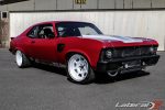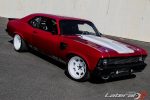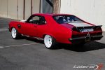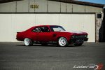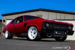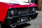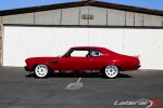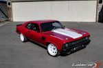 The Dupont VW Chili Pepper Red grabs attention on this Nova a mile away. Finished with the Toyota White stripes, everybody is stopping to look at this ride. A few custom touches were done on the body as well such as a ’69 Firebird rear bumper, Anvil Auto carbon fiber hood and a custom front bumper.