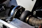 We all know that the factory suspension wouldn’t be up to par with Jon’s plans. Ditching all that, Jon slipped a complete Chris Alston Chassisworks front end under the car. In the rear a modified G-Bar 4-link was installed with Currie Enterprises billet arms, Johnny Joints and a full floater Currie rearend. In order to stiffen up the chassis and increase saftey, a 12-point roll cage was installed. Dampening is handled at all four corners with Fox triple adjustable PODIUM shocks.