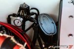 Going a step further out of the ordinary, Jon installed a single CX Racing T4 78mm turbo set up on this BBC to make sure that he will put the hurting on a few LS powered cars. A complete FiTech unit keeps the fuel properly mixed for the engine, which a complete HyperFuel system does the job of supplying fuel to the FiTech unit. Exhaust is expelled through a set of Gibson mufflers after going through a custom set of headers that have been ceramic coated. Cooling for the turbo is a CX Racing intercooler and an AutoRad radiator set up keeps the BBC cool at all times.