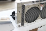 One thing is we didn’t install the petcock fitting at this point. It won’t fit through the hole in the baffles, so you have to install it afterwards. Our last step was to flip over the radiator and install the condenser using the supplied bolts.