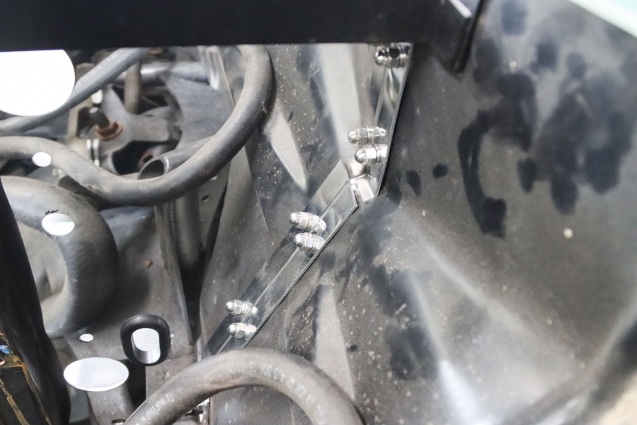 Before we installed the new radiator we wanted to pre-assemble a few pieces. The fan shroud is already installed on the radiator but the cooling fans aren’t; using the supplied bolts they were installed in a few minutes. The inlet/outlets also have to be installed. One trick thing we like is these fittings are simply ORB fittings, but Champion offers them in standard hose barb sizes such as 1.25″, 1.5″, 1.75″, -16AN or -20AN. It’s important to note on these you need to use a little bit of anti-seize to ensure they don’t gall up on you.