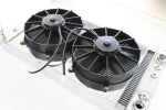 Wrong. The no-name radiator fits in the stock mounting location but it’s smaller and only has a single fan on it. All winter long it works fine but when things start to really heat up so do the temps on this car. In addition we are getting ready to add air conditioning to it which will also increase the load on the engine which can cause it to overheat even easier.
