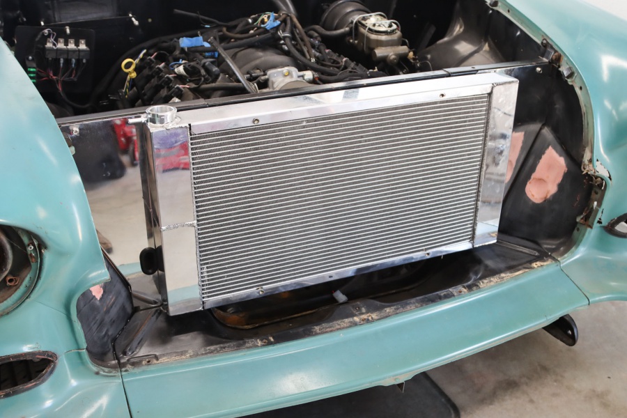 Right now it’s summer. It’s hot. We feel it and our cars do too. If you’re going to drive in the summer or try to survive Power Tour, you need a cooling system that’s up to par. Our 1955 Bel Air build has an aluminum radiator and electric fan so it should be good to go, right?