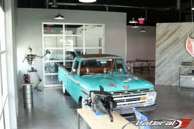 Upon entering the building, we could see that Restomod Air has a different feel. We’ve been to other companies where you walk in and you don’t know if they sold car parts or life insurance. There’s no doubt where you’re at with Restomod Air. The offices were cleaner than a doctors office with well thought out decor. Parked inside the office was their F100 truck, fresh off the HRPT. “Normally we have a bar here in the middle,” explained Gary their Salesman. The bar was still coming off the tour when we stopped by.