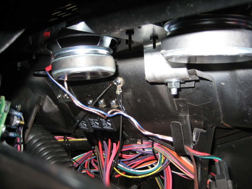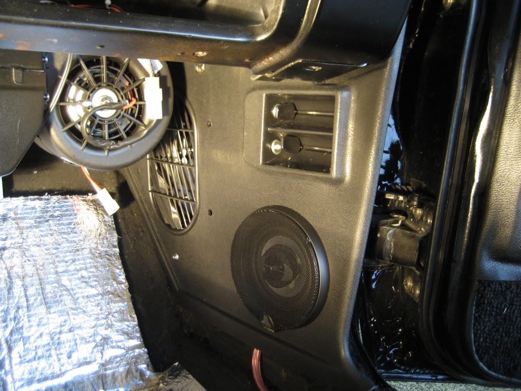 I decided I wanted the combination of old school fresh air vents and modern AC and Heat. I have good memories of opening the vents in my 68 on a cool night. So it will have both. I installed the 4" JL's in the kicks and isulated the area behind the speakers. Since the dash top was replaced by Prodigy Customs during the body restoration, the defrost vent mounts were missing. I fabbed up some brackets out of some roofing materials and they are exactly where they need to be. http://i200.photobucket.com/albums/a...9/IMG_1150.jpg http://i200.photobucket.com/albums/a...9/IMG_1142.jpg http://i200.photobucket.com/albums/a...9/IMG_1133.jpg http://i200.photobucket.com/albums/a...9/IMG_1137.jpg |
