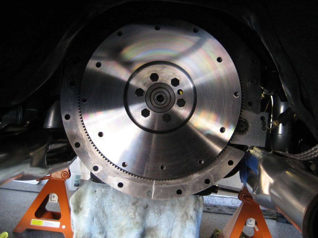 After three days of crawling around on the garage floor, I got it back together. I went with the proper gen iv centerforce billet steel flywheel. Nice piece. Of course I then had to remove the shims from my starter nose due to about .060 difference in nose to ring gear clearance difference from gen iv to vi. I did buy a real metal clutch alignment tool for like 20 bucks. The tranny went in so easy. I had it up and in in less than 10 minutes. Best 20 bucks I ever spent.