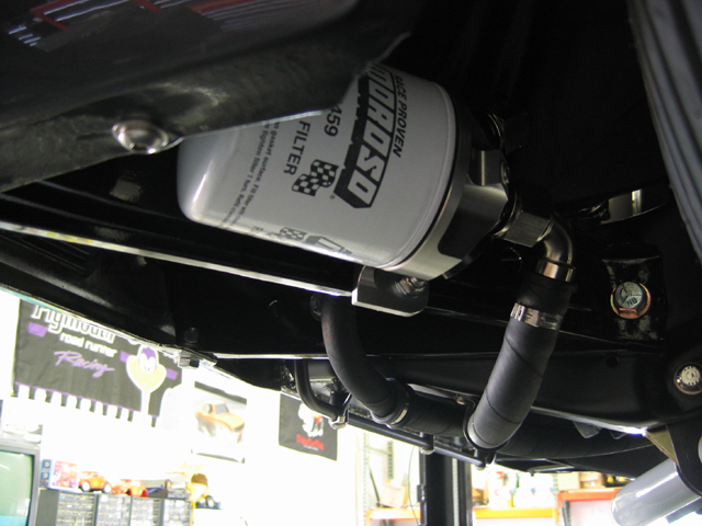 forgot to post where the oil filter ended up. That last pic didn't work as the front bumper brace interfered. So it ended up being bolted to that brace. Clears the tire easily, up behind the bumper, not hanging down at all.