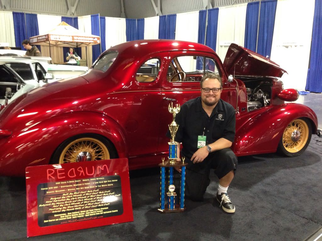 It was fun hanging out and running in to a few guys from the forum. I saw a handful of guys wearing the the world famous Lat-G shirts. The West Coast Auto Craft guys did pretty well with their 3 cars there. The red 37 Chevy took 1st place, the green Edsel took 2nd and I walked with a pair. I was very happy after being placed in the Full Custom Hardtop class. Some fantastic cars there for sure. Always a great time. http://i855.photobucket.com/albums/a...ps0af6bfe7.jpg http://i855.photobucket.com/albums/a...ps85043b43.jpg http://i855.photobucket.com/albums/a...ps7c4af102.jpg Sure was surprised when they announces this http://i855.photobucket.com/albums/a...ps4172f701.jpg Lenie, I have a feeling you are going to clean up at the Portland show. I'm still looking forward to seeing some of those awesome pics. |