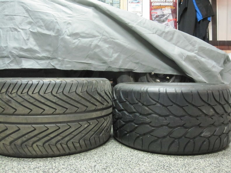 Size Does Matter- Which in the end might not Matter Posted: Nov 04, 2011 www.2ndchancecamaro.com Last week I was looking at the tires stored in Mario's 69 Camaro. I couldn't help but notice that his tire looked skinny compared to the 335 BFG tire sitting in my garage. I kept telling Mario that my 335 was much bigger then his 345 and he said no way. So I took his tire home to find out if I was correct. I figured a side by side test would be the only way to prove that the BFG KDW 2 are indeed bigger. Left: BFG 335 35 18 ( 14" Wide ) Middle: Michelin 345 __ 19 ( 13" Wide ) Right: BFG 295 35 18 ( 12" Wide ) Close up of the BFG 335 & Michelin 345 -- The BFG is 1" Wider http://www.garagescene.net/_data/i/u...98838d7-me.jpg Close Up of the Michelin 345 & the BFG 295 -- Not much of a difference http://www.garagescene.net/_data/i/u...7daef51-me.jpg The BFG 335 height compared to the BFG 295 - you can see the difference is much greater http://www.garagescene.net/_data/i/u...e58e9fd-me.jpg Also the height is much taller on the Michelin. http://www.garagescene.net/_data/i/u...e7e5271-me.jpg The plan has to been to run the 295's on the street and the 335's for Good-Guys events. In the end I may only be able to run the 295 on the back of 2nd Chance Camaro because I can't get the bracket from DSE. Why you ask ? The Mini-Tubs I purchased from DSE will fit the 335's. However, since I didn't buy there complete leaf spring conversion kit I am unable to purchase the front offset sping pocket I need to complete the conversion. Where I am confused is I can buy offset shackle & spring perch's but not the lower spring pocket - odd. I had the Allen (really nice sales guy) ask Kyle if I could purchase them and Kyle said no dice which kinda sucks. So now I may be forced to run only the 295's full time. So Buyer Beware if buy the DSE Mini-Tubs you are going to have to make your own lower mounts for the front or by one of there 3 kits DSE offers. Sometimes you win sometimes you lose. I do have a couple Options Option A: Buy there Mini-Tub Kit # 041221 $1699.00 which doesn't include Leaf Springs & Shocks which will give you an 1.5" drop and then sell the other parts you don't need. Seems expensive but it's only money and you can't take it with you. Option B: Would be to have a local fab shop make a set of offset shackle mounts to complete the conversion. If I go this route I will make a couple extra to help out the two other guys I know that are in the same boat as me. |