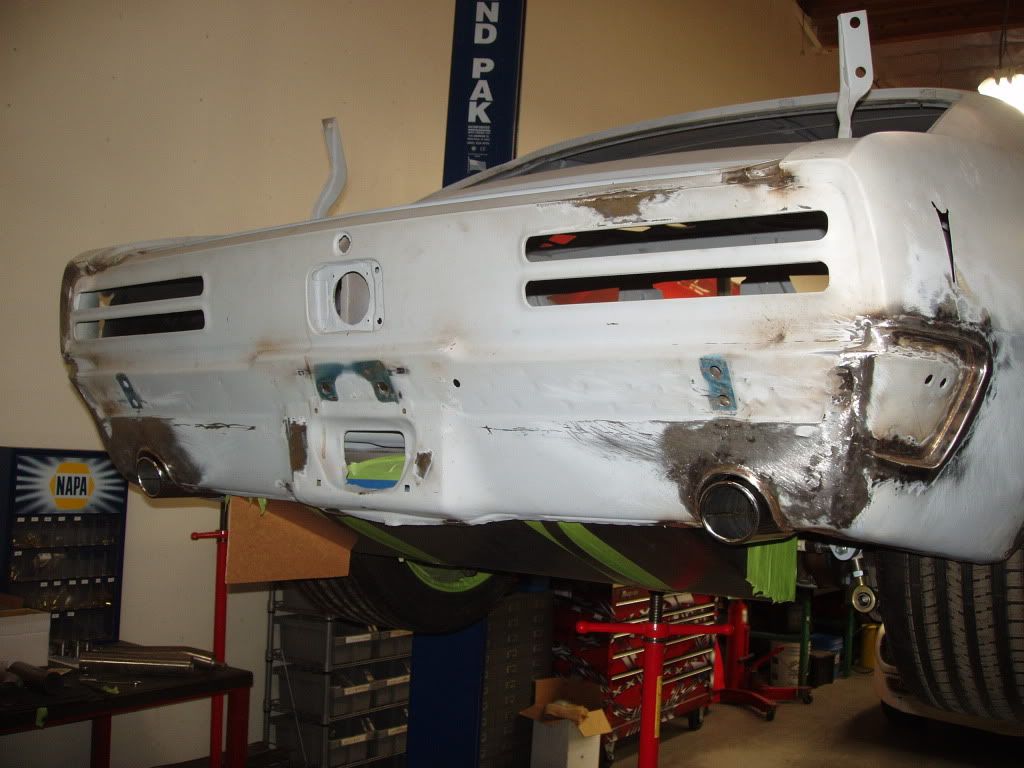 Here is the latest status on the bird.. We have rough finishes on the rear bumper with tail pipe openings.. We just finished the design on the tail pipe hangers & will have a pin to hold hangers with rubber o-rings to allow expansion of exhaust @ the rear.. When we machine these pcs I will post pic on how the concept works :D