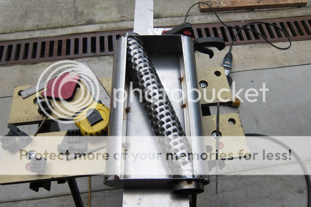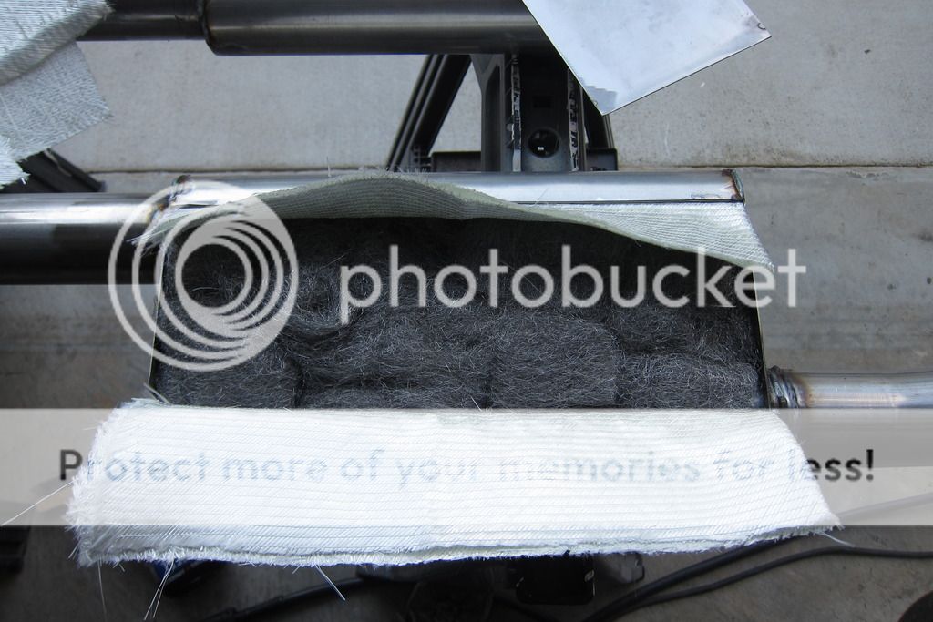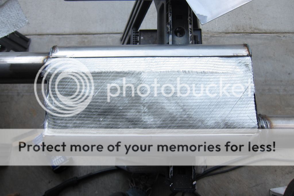 On to the pictures. I made my own mufflers before I realized I could actually buy similar size mufflers from both Spintech or Flowmaster. The design is a 3 inch thick muffler that's 2.5 inches straight through. I laid fiberglass down first and then stuffed steel wool all around the inside of the muffler before putting the top plate on. I got the idea to do it this way from looking at cut away pictures of Magnaflows and watching videos on youtube. Hopefully, it holds up well. http://i472.photobucket.com/albums/r...psltkkhvnt.jpg http://i472.photobucket.com/albums/r...ps8xslxrx6.jpg http://i472.photobucket.com/albums/r...psfamjozux.jpg http://i472.photobucket.com/albums/r...psvntuypws.jpg http://i472.photobucket.com/albums/r...psf30edcdo.jpg |