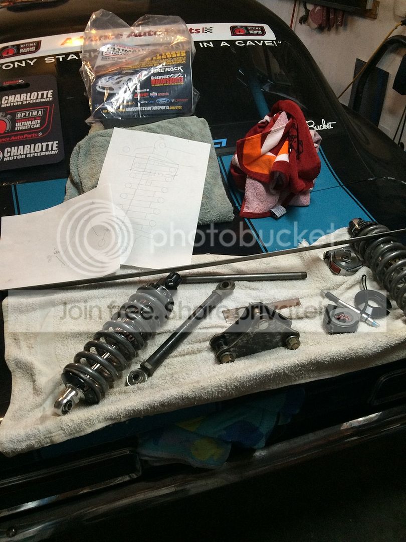 http://i539.photobucket.com/albums/f...psop7ulbht.jpg back to the drawing board... http://i539.photobucket.com/albums/f...psftbpn592.jpg some new parts cut out and welded together for the rockers http://i539.photobucket.com/albums/f...ps6ejjchit.jpg All mocked up and ready to slide into the trunk area under the package tray. http://i539.photobucket.com/albums/f...pso1mz0ijx.jpg Push rods installed and clearences made to clear the frame and get into the trunk. http://i539.photobucket.com/albums/f...psgyjoenpe.jpg It all looks good and the tire has plenty of clearance on the inside inner fender. Next up is to pull it all back out and finish welding and paint the assembly. while it's out I'll finish out the notched frame rails and clean that area up, and also add some support to it since I cut it out. Other plans for the winter are to add an L88 style hood with the front section vented for the radiator and a few other odds and ends. I have to buy a new helmet and shoes this year too, that cuts into the car parts monetary fund. I also picked up an LS2 6.0 block that I want to build a stroker motor with. I found out real quick that if I want to really run with the big dogs I'm gonna need a bigger motor! Stay tuned! |