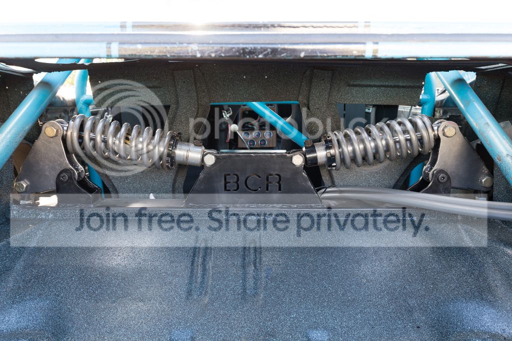 All finished up! well almost. I still need to make some covers for inside the wheel well to try and keep most stuff out of the trunk from the pushrod reliefs. Got it back on the ground after Christmas and was able to drive to our local Cars and Coffee Jan 2nd. Everything worked perfectly, its actually smoother and quieter than the previous setup! Its really hard to keep my focus on the road instead of watching it all work through the trunk in my rear view mirror! I haven't beat on it hard yet, but I did take it through its paces on a really rough road.