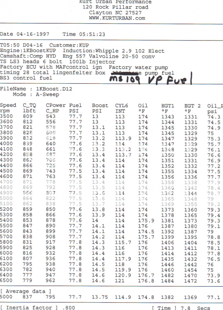 I like the orange better than the green. Those whipples make some serious power, Kurt just put our blower test mule on the dyno last week, first pull it made 962 hp and over 800 lb/ft@3,500 rpm, the timing was only 13* and it was lean, we had to stop since it pitched the water pump pulley off.