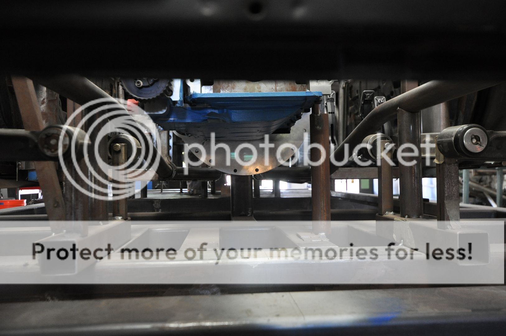 We did our first months worth of work for the new owner, Troy. We are working to try and get the engine as low as possible with the Dailey Dry sump pan that is on it. We have a ton of clearance under the pan but the limiting factor is the bellhousing. So we have been exploring going to a relocated starter with a triple 7.25" clutch from Tilton or QuarterMaster. http://i616.photobucket.com/albums/t...-2013007-1.jpg http://i616.photobucket.com/albums/t...-2013006-1.jpg http://i616.photobucket.com/albums/t...23-2013005.jpg The customer really wants to run a bad ass supercharged engine and he has great contacts with the guys at Whipple. So we have been exploring how to get a 2.9 - 4.0L super charger on this car with out having it look like a prostreet car. We have been playing with different ideas to try and make it really slick. If you notice this blower and manifold combo has a rear entry throttle body with completely hidden injectors in the manifold. This game plan would be awesome with the rear billet aluminum firewall we are laying out to design. Plus this low profile manifold and pulley system from Wegner might keep things under the hood. http://i616.photobucket.com/albums/t...ngewhipple.jpg http://i616.photobucket.com/albums/t...lowerdrive.jpg The blower manifold mock up in this picture is a little high still but, like I said we think we can drop the engine 2" still. The sheetmetal is just a mock up to begin designing a billet firewall that will be machine from 5/8 plate and become a lightened structural member of the car. http://i616.photobucket.com/albums/t...29-2013021.jpg http://i616.photobucket.com/albums/t...29-2013022.jpg You can see it still looks a little "Prostreet" with the full intercooler and such. http://i616.photobucket.com/albums/t...29-2013023.jpg You can see the way the aluminum firewall will set in the car around the designed frame pieces once it is built. It will go in from the front and bolt in from the interior. http://i616.photobucket.com/albums/t...29-2013024.jpg In this picture you can see how we have brought the upper tube crossmembers back to the reinforcement plate that goes inside the tailpanel. http://i616.photobucket.com/albums/t...29-2013004.jpg In this picture you can see the mock up fuel tanks we set up to define the perfect shape before we send the these to Rick's Tanks to make the dual pump system for this car to handle the Horsepower. http://i616.photobucket.com/albums/t...29-2013017.jpg |