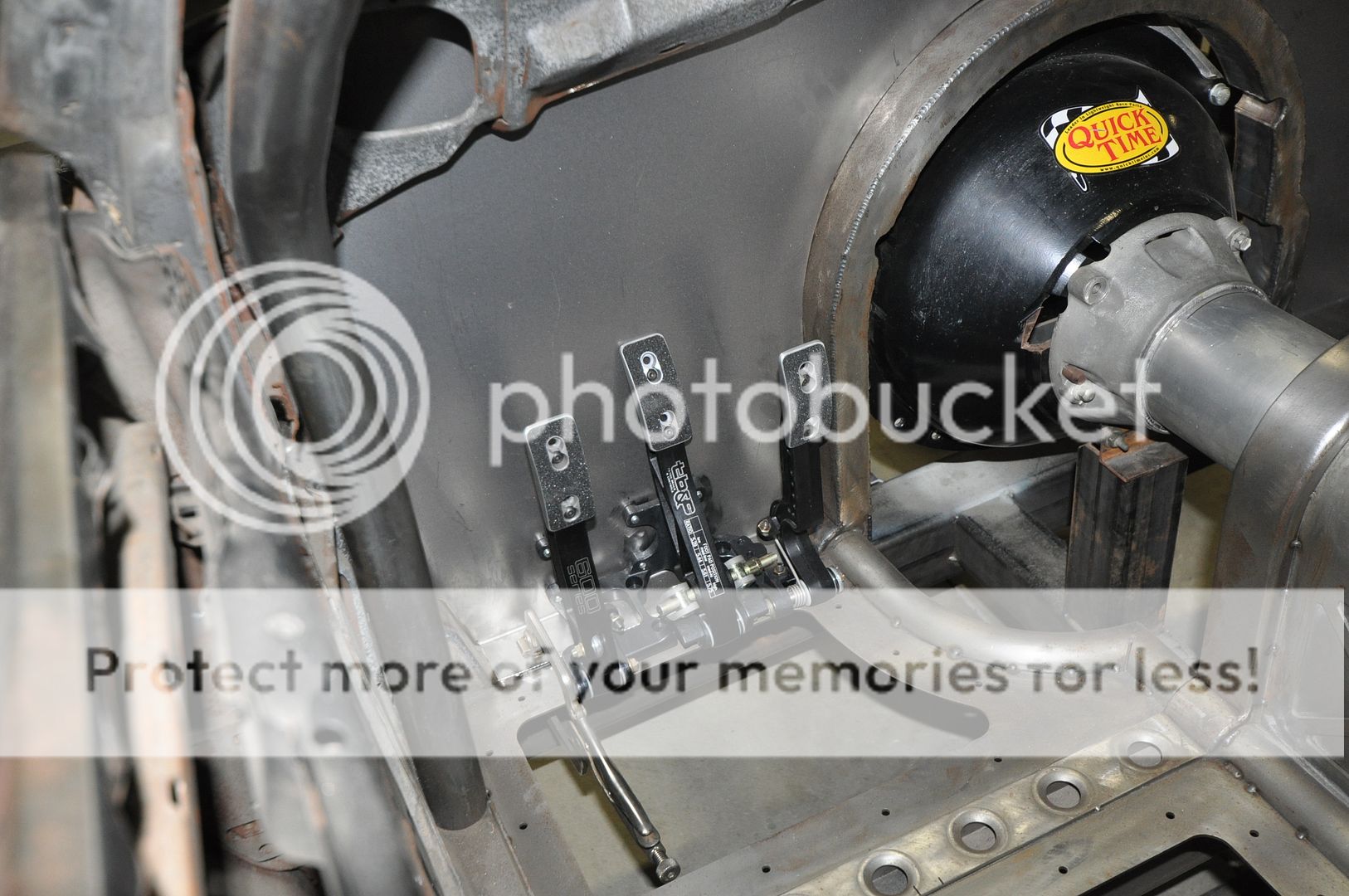 You can also see the extension of the rear valance all the way forward to the back of the wheel tubs. You can also see how beefy our chassis tables are. You can't make a chassis table out of material weaker then the car and intend it to anything more the just jack stands. Plus you can't make the table and roller and expect it to be level where ever you move it in the shop. :idea: :idea: :idea: http://i616.photobucket.com/albums/t...29-2013020.jpg Finally here is the mock up of the pedal system that will allow us to make custom pedals that we can machine and give us a really nice steering column angle. Hanging pedals would be tough in this car as the reservoirs would be really tight to the hood and tough to fill and the hanging pedals would limit the angle of the column and require more angle to send it through the firewall below the master cylinders and inbetween the brake and gas pedal usually. http://i616.photobucket.com/albums/t...29-2013025.jpg We should start back on this months round of work next week. It is coming along nicely and I hope to start doing some heavy design work on the front end of the car. Thanks for taking time to look. |