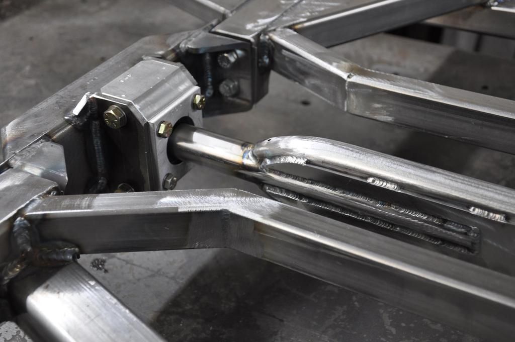 Yay--tubes! I like the idea behind the thread-in coilovers, given the potential for height adjustments without killing travel or causing pointless coil bind for "stancing" purposes. The contrast between round and rectangular tubing looks really great!