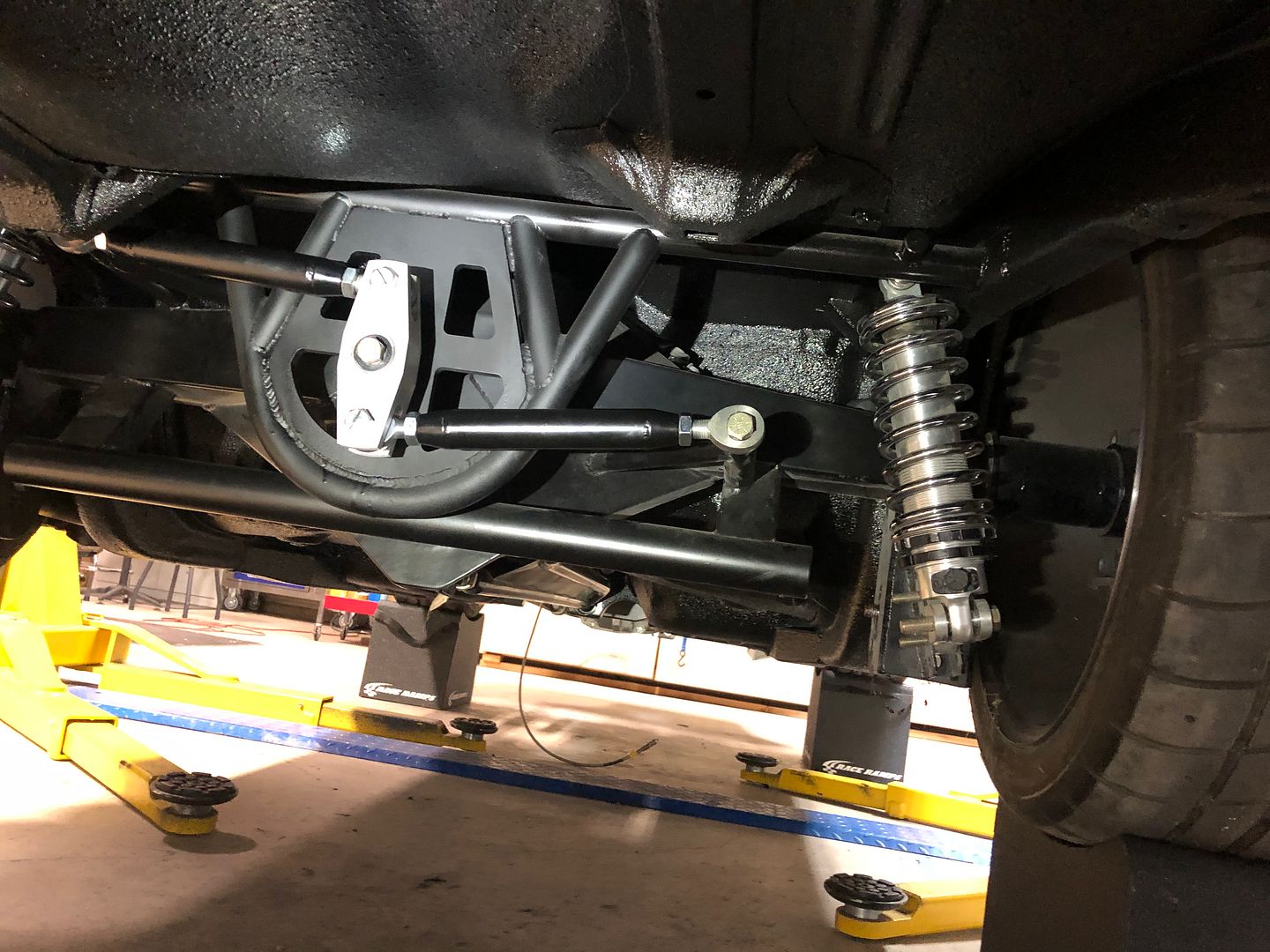 Stance is spot on. What's your overall wheel diameter in the rear? How much travel do you have? I really would like to bring my car down lower, but I worry I won't have good travel.