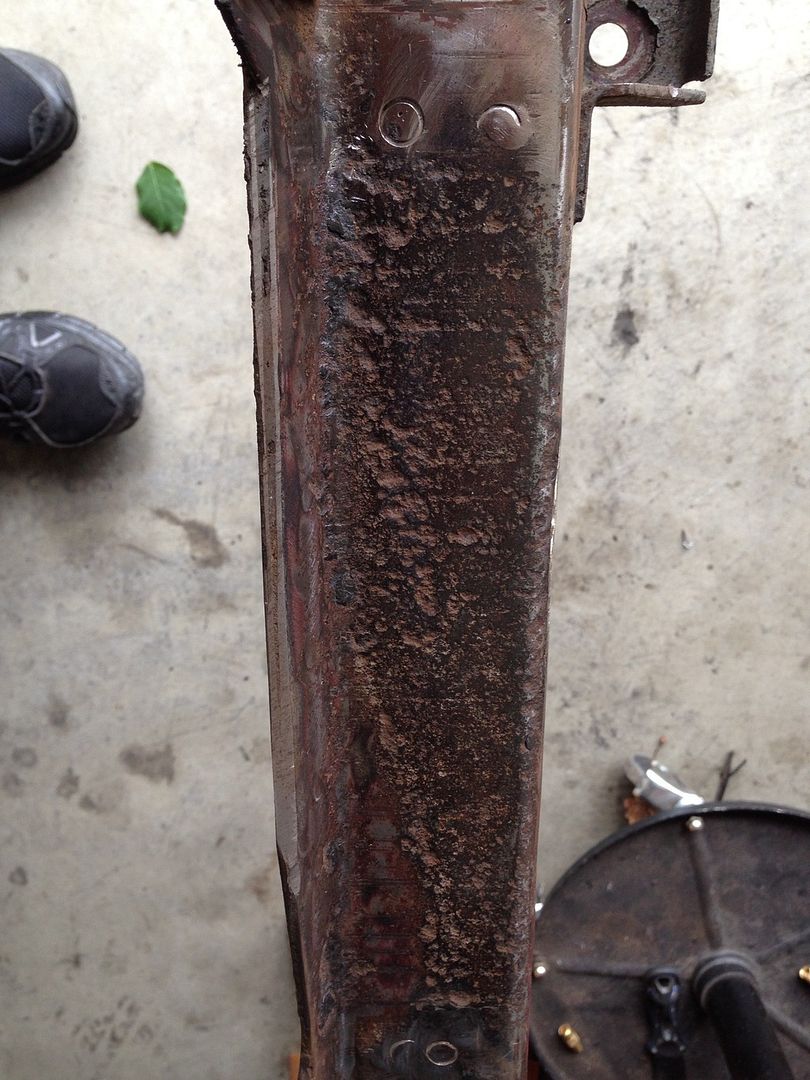 Brian did not replace the frame rail only cut out the rust and made a patch. On yours it looks like you have a lot of rust and I would replace. |