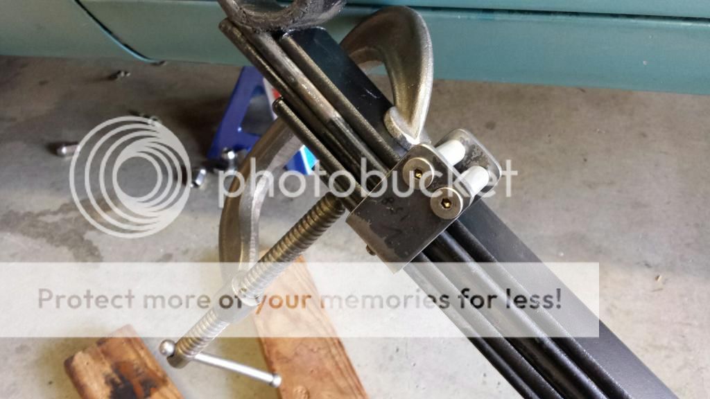 Mike built the cage for me several months back. He did a great job and it is a very tight fit in the interior. I finally got ahead on my "Honey Do" list and pulled the interior back out to spray it before it got too rusty. http://i885.photobucket.com/albums/a...psac69a630.jpg http://i885.photobucket.com/albums/a...pscdb9502e.jpg http://i885.photobucket.com/albums/a...psdfd928dc.jpg http://i885.photobucket.com/albums/a...ps87728d11.jpg http://i885.photobucket.com/albums/a...psd6e647ab.jpg I actually modified my leaf packs before the November GoodGuys, but I figured you guys would like to see them anyways. Went from a 155# to about 185#. Really keeps the nose down better (no longer lifts the inside front), but my tires are too shot to get a good idea if it will be any faster. http://i885.photobucket.com/albums/a...ps0dedea8a.jpg I added an extra leaf below the main, flipped the old #2, and added a new #3, and an anti-wrap leaf to the front half of the pack. http://i885.photobucket.com/albums/a...psfcfdc243.jpg Formed up a bunch of leaf straps http://i885.photobucket.com/albums/a...ps18eb0c03.jpg http://i885.photobucket.com/albums/a...psdfaa554e.jpg And had to make a custom aching tool...with adjustable stop. http://i885.photobucket.com/albums/a...psf557272e.jpg FYI, McMaster-Carr sells a bunch of thicknesses and widths of 5160 spring stock. As long as you use sharp drills bits, keep it cool and use lots of lube, this stuff drills great. |