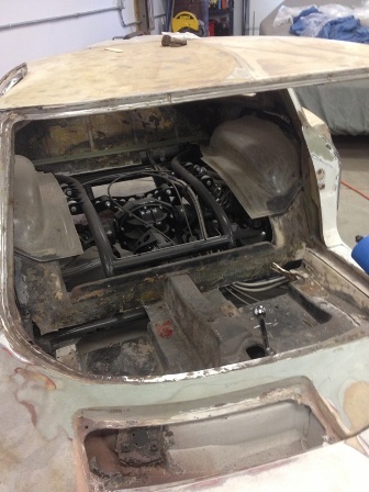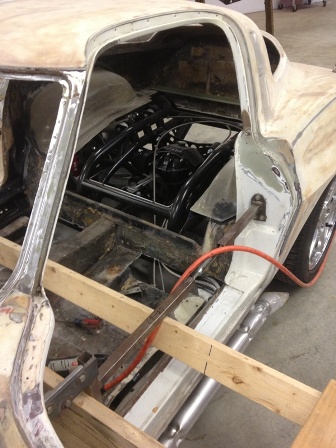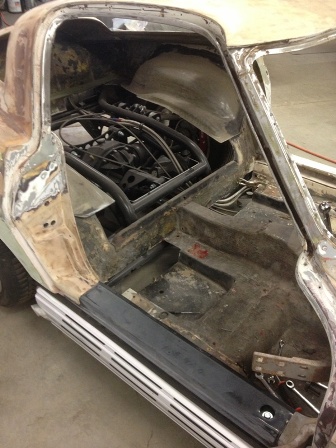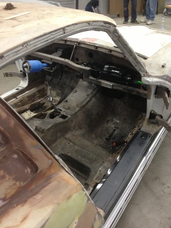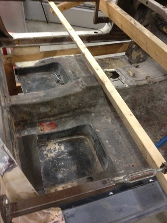 Cuts to rear floor in order to get chassis to fit to body. Wheel wells already in place