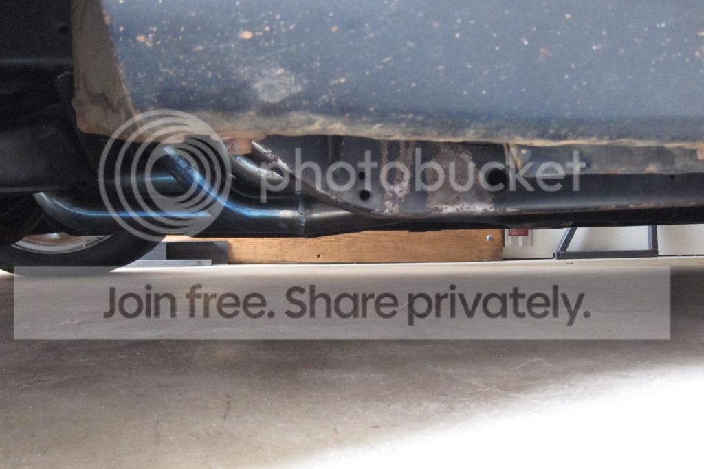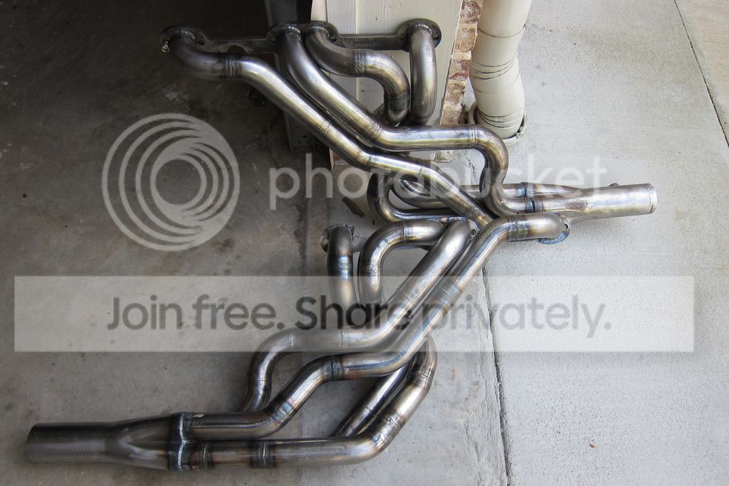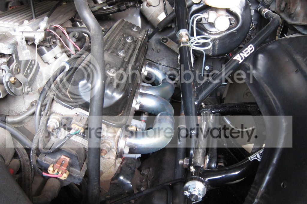 http://i472.photobucket.com/albums/r...psq3ruqy90.jpg http://i472.photobucket.com/albums/r...psj9wrr7qd.jpg I'm very happy with how they fit. Only 3 or 4 plugs are a pain to get to but I bought a shorty spark plug socket since I couldn't make my own that really helps make life easier. If you can find a spark plug socket that has the hex cut to the bottom of the socket, you can simply cut it down and drill out the center section to make shorty socket. The ceramic of the plug will stick through the socket after you drill it out. All in all, these headers are easier to install than the headers I put on this engine when it was still in my 4th gen. Plug changes are easier too even with the hard ones. I can't get a decent picture of the passenger side since it's so tight in that area. Something I was able to pull off is the headers are mirror images of each other coming out of the cylinder heads. They obviously change drastically after that but from the top they look the same. http://i472.photobucket.com/albums/r...ps3qumsoah.jpg Ground clearance is great! I promise, the system is fully installed in this picture http://i472.photobucket.com/albums/r...psyiujnitx.jpg See? There are the mufflers. I painted everything black to hide it all away. http://i472.photobucket.com/albums/r...pslz2fcc08.jpg Here's the collectors sitting up front and a view from the front. They are just under 4 inches off the ground, no lower than the oil pan, and above the front cross member still. http://i472.photobucket.com/albums/r...ps9ujdof5s.jpg http://i472.photobucket.com/albums/r...psq5w0qxww.jpg The mufflers are 5 inches off the ground now. I plan to lower the car in the rear some more. I should have the mufflers between 3.5 and 4 inches off the ground when done. I really hope that's plenty of clearance for me to get in and out of the driveway easily. Right now, it's a breeze getting in and out. I wish I had taken measurements before I cut the old system out, but I missed the reminder I had left myself. Oh well, I know it's more clearance. I just don't know how much. I didn't get a good picture of it but I put v-band clamps in the system just after they turn up from the mufflers. I can easily drop the system off of the car in a few minutes. The exhaust is a slip fit with a band clamp at the collector. Best design I have ever used. I have no idea why companies still use flanges any more. I won't if I can ever help it. Next is pulling the headers right back off to have them sand blasted and ceramic coated. I'll be going black to hide any fabrication marks. I'll also be getting the new rear in and getting the rear springs dearched. I really hope that doesn't take long. After that, who knows. I really need to get better seats and seat belts. Thanks |