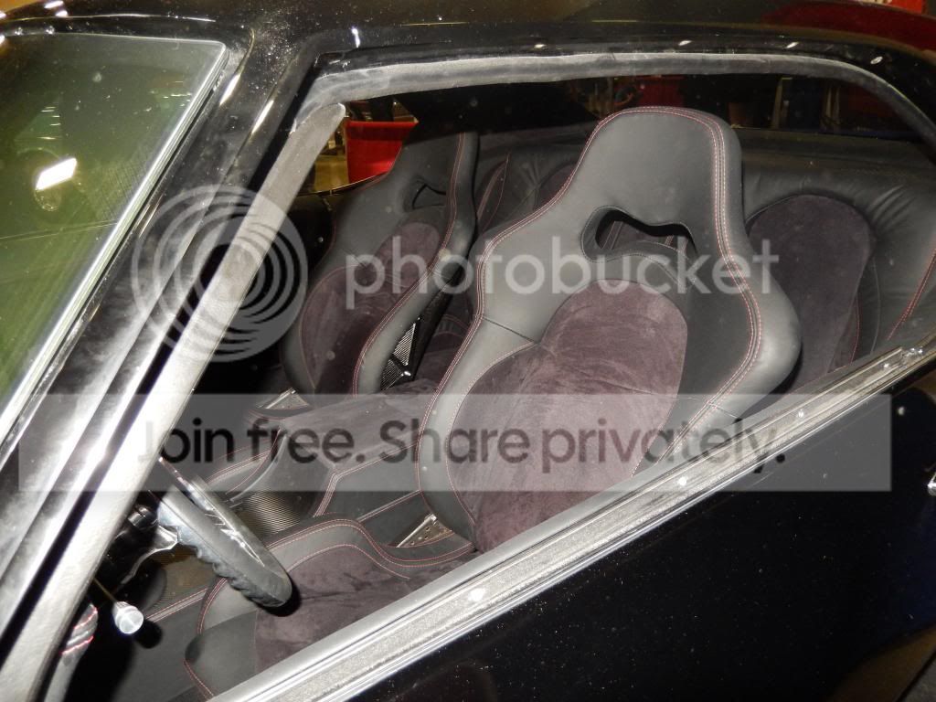 Goodguys car show pics. The flash made the suede look a little gray in the picture. Still need to do a bunch of trim work but its getting there. WCAC is freeking amazing. My jaw dropped when I seen the interior today. Needs a tad bit more wiring, build intake tubes for manifold, install exhaust, then work out the kinks and shes done....