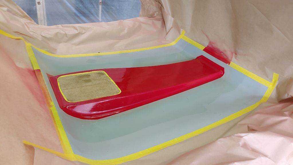 Sprayed some red paint just to help with seeing air bubbles while laminating. Not using any gel coat here -- it's just a splash mold, so not really necessary in my opinion.