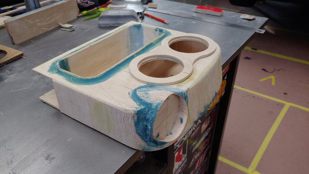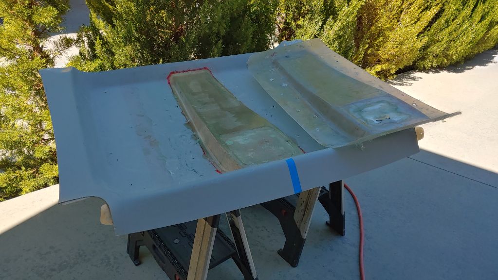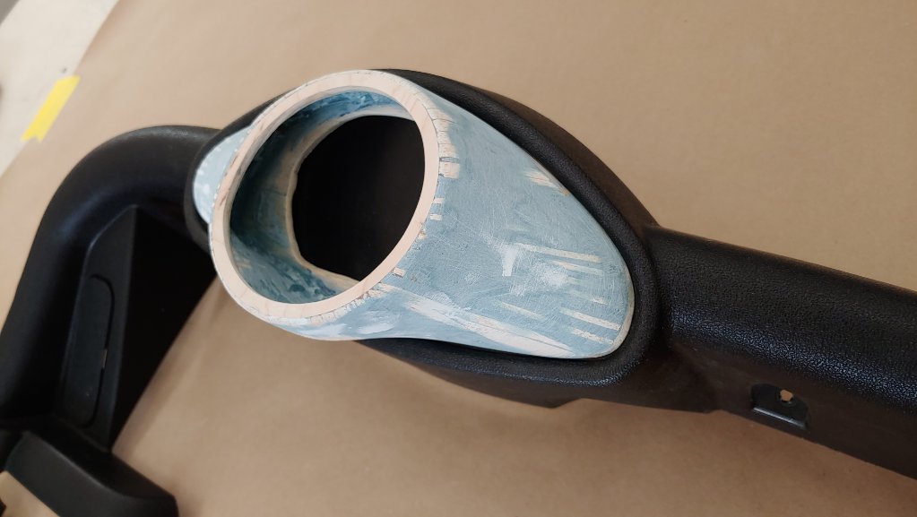 Attachment 72788 4 coats of wax, 2 coats of PVA mold release, laminated with 4 layers of cloth. Then drilled for rivets. Attachment 72789 Mold removed and busted out the balsa plug. Attachment 72790 Cut open for laminating. Attachment 72791 4 coats of wax, 2 coats of PVA mold release, then riveted the mold to the headliner. Attachment 72792 Green sheen is the PVA. Attachment 72793 Laminated with 1 layer each of 3/4 ounce and 1 1/2 ounce mat. Mold removed. A little clean up and primer on the way. Attachment 72794 |