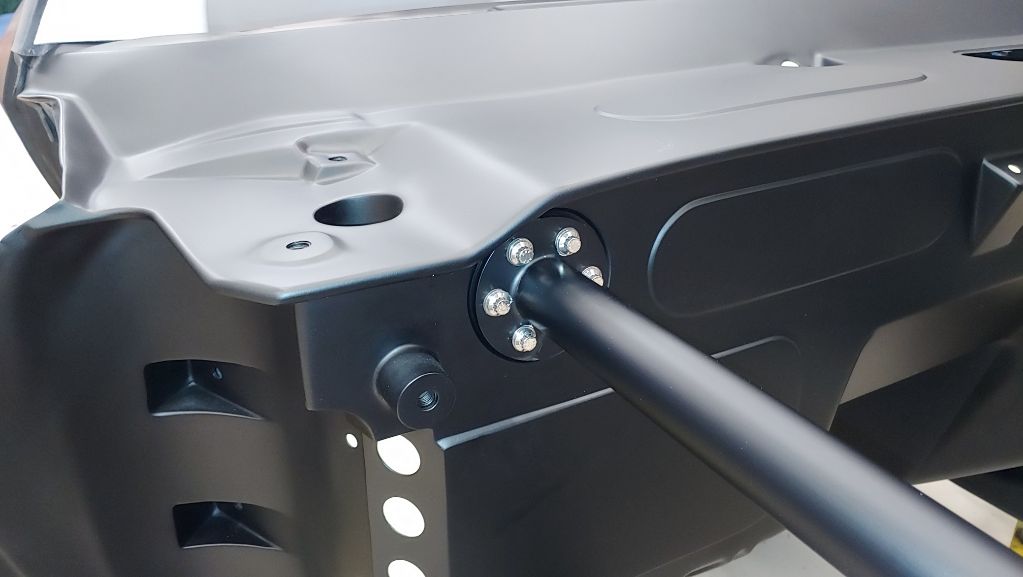 Was able to match the 75/25 gloss of the DSE powdercoat using Omni clear with a flattening agent. I broke the line at the welds so it matched pretty well. The match at the subframe connectors wasn't as good, so sanded the whole thing down and sprayed it with PPG black and then PPG 8115 clear. Much better all one sheen. Was just trying to keep the PCoat for toughness, wanted the roll bar to match the firewall...blah blah blah. Clearly a minor problem in today's world!