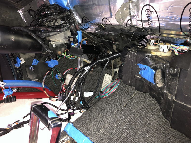 I want to keep the engine bay as original looking as possible so I am not trying to hide the wire. I need to order a new firewall wire gutter so I can route the body harness back to the factory location.