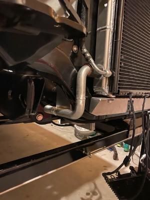 Now it's time to find someone else to do it. I got some work on the plumbing for the heatexchanger The lower tubing at the bottom was easy 3 90's welded up from pump to exchanger. The top was a little harder finding room for the tubing, the A/C line and the RS door. A little trim on the door, re arranging the A/C line and a hole through the rad support with an AN fitting for the hose. Making the hose fit on the supercharger around the fuel rail crossover. Here's the bottom tubing https://hosting.photobucket.com/imag...720&fit=bounds The top for the return https://hosting.photobucket.com/imag...720&fit=bounds https://hosting.photobucket.com/imag...720&fit=bounds Next post will be the exhaust pics. |