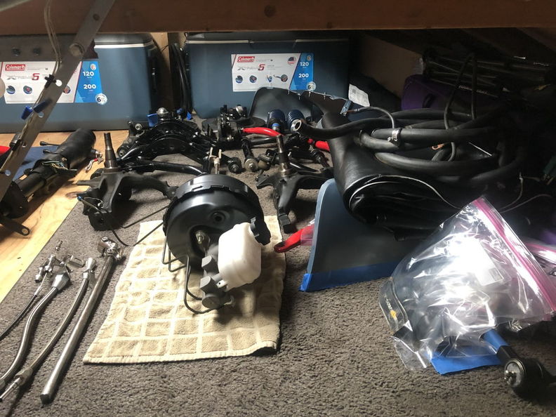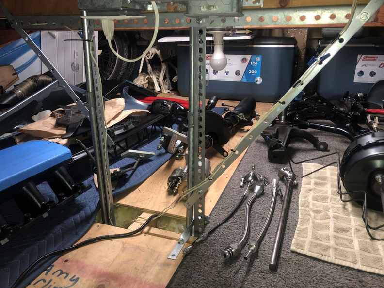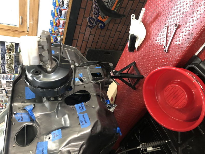 http://www.garagescene.net/_data/i/u...1b359e3-me.jpg http://www.garagescene.net/_data/i/u...3ecccf8-me.jpg How the heck am I going to get to these nuts. http://www.garagescene.net/_data/i/u...710df77-me.jpg Time to bring back out the cut up tools http://www.garagescene.net/_data/i/u...3aafe37-me.jpg Since I am working alone I need to plan ahead and put the wrenches on the nuts. http://www.garagescene.net/_data/i/u...965ae38-me.jpg http://www.garagescene.net/_data/i/u...c91d16c-me.jpg See the big hole on the left. Yes I stuck my arm in there and reached around to the wrench in the car to loosen the hardware. http://www.garagescene.net/_data/i/u...dd748d6-me.jpg Everything is officially off the firewall. http://www.garagescene.net/_data/i/u...d4eb70f-me.jpg Remember that dolly that I brought back home from my warehouse and painted. Well it's officially back on the front of the car. http://www.garagescene.net/_data/i/u...da09818-me.jpg More parts for the attic. http://www.garagescene.net/_data/i/u...c41547b-me.jpg |