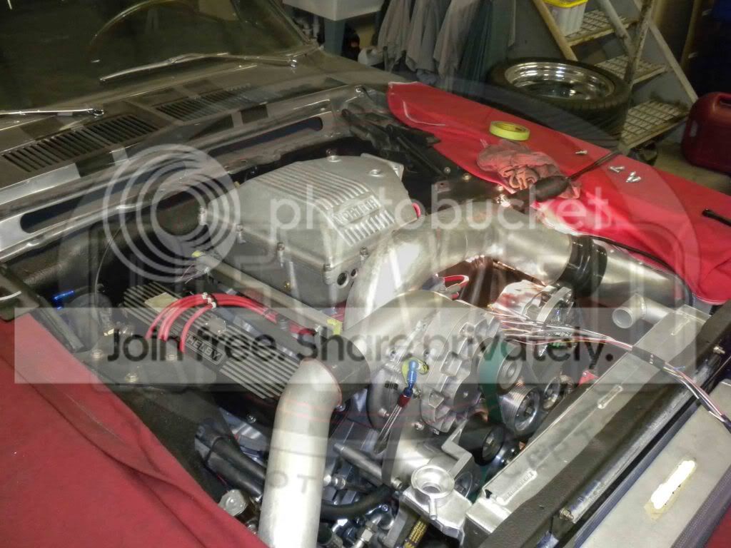 Here is one we have that is almost done. '67 GT 500 E Super Snake with a 482ci all aluminum Shelby FE freshly rebuilt by Gessford Machine. (Last shop that "tuned" it set total timing to 70* and surprise! it was knocking when we got it.) Upgraded the blower from a V2 to V7 so we had to machine a new S/C bracket and redo the tensioner system. Custom fabbed an intercooler system that all fit inside the GT 500 E body work then topped it off with a FAST XFI system on a CNC ported Edelbrock manifold. The FAST throttle body is hidden inside the carburetor enclosure to keep the vintage supercharged look. Here are the pics in final fitment- the plumbing is all back off right now and getting painted up to look pretty. Wiring and plumbing is being tied up and hopefully will be turning the key here soon!