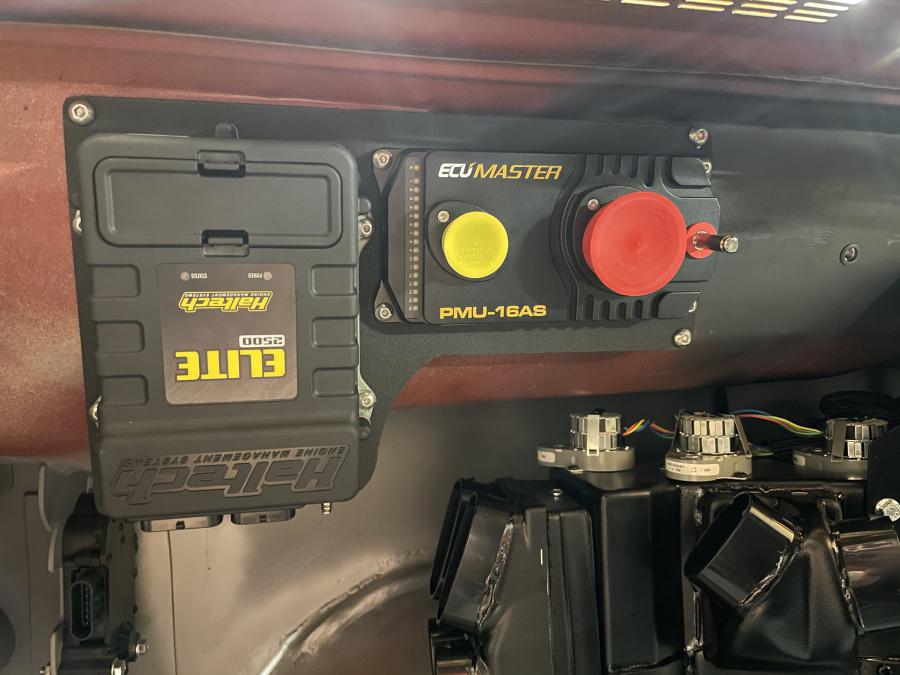 I got the Haltech ECU and ECU Masters PDM mounted today. I really wanted to put them behind the rear seat cushion for easy access but my wiring guy didn’t want to twist wires over a 4’ section. Also got the Recaros mounted to see how I fit in the car. Used the Planted Tech seat bases with the Recaro sliders. They worked great.