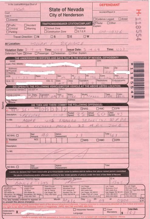 Well I got my first ticket today! Second time I've been pulled over in the last 30 days.:_paranoid Luckily I got away with it the first time. Man I thought the old speedo speel would work everytime. I have a feeling I'll be collecting these. I barely touched the throttle and there he was. http://i200.photobucket.com/albums/a...ket_0001-1.jpg |