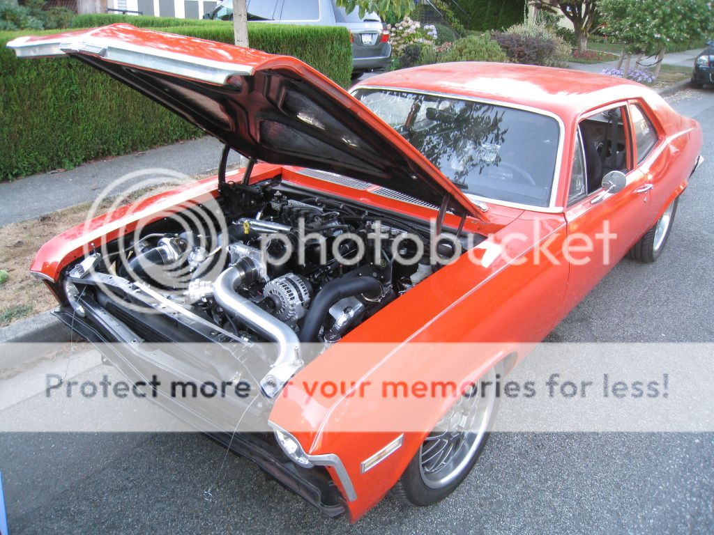 http://img.photobucket.com/albums/v2...2camaro030.jpg and im still in the process with this: http://img.photobucket.com/albums/v2...forsale013.jpg I did all the work in my garage except for some cutting of panels and welding. If you click on the link to my photobucket you will see how it all came together. Its not a fancy Pro Touring beast but its my beast. Parts list: Not Mini tubbed Stock sub frame with aftermarket upper and lower A arms. Hotchkiss rear suspension Wilwood Disc breaks Front/ Disc rear 12 bolt rear end with 3:07 gears 406 SBC with a 350 Tranny Car is wearing 3 week old paint job. Top and Bottom Vintage air Future plans are: TMI bucket seats and stock interior and Rushforth X rated wheels. |