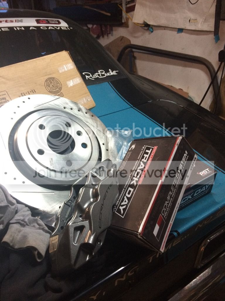 Since the both the hub and spindle were broken and I planned to buy 2 hubs and a spindle I looked into upgrading to a C7 spindle and hub assembly. They are almost the same but just a little different. The C7 pieces are much beefier. Plus of this swap was that if I could make it work, then my calipers would bolt right on. So that's what I did! now the whole front is C7 less the control arms. I made up some brackets to hold the calipers on the rear and bolted everything together. I'd like to thank Powerstop Brakes for helping out with the rotors and pads for the swap! http://i539.photobucket.com/albums/f...psdokh8iwf.jpg http://i539.photobucket.com/albums/f...psdpbwwuw9.jpg http://i539.photobucket.com/albums/f...psxedznc6g.jpg http://i539.photobucket.com/albums/f...psgk8dqgeg.jpg http://i539.photobucket.com/albums/f...ps2szmxrbg.jpg |