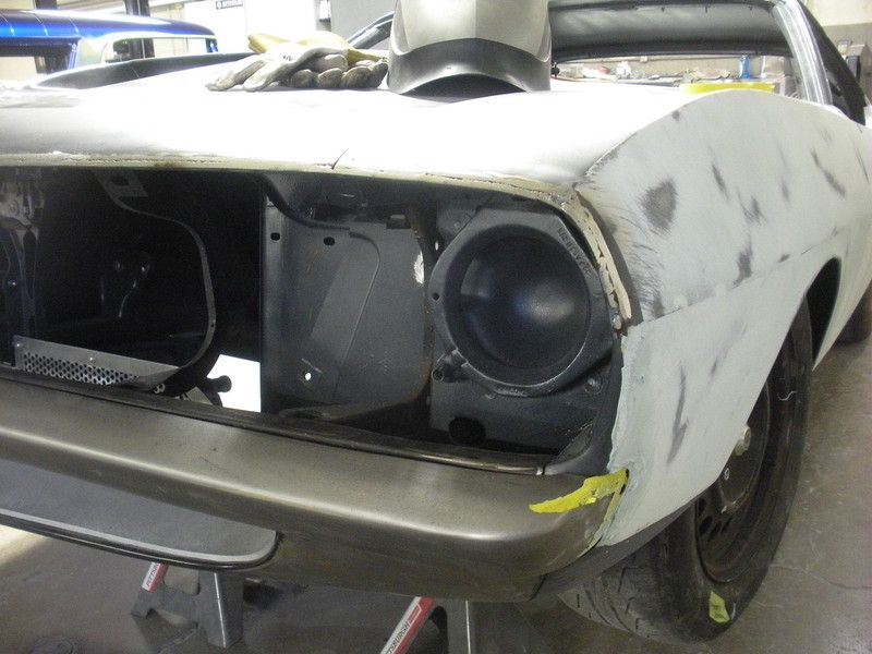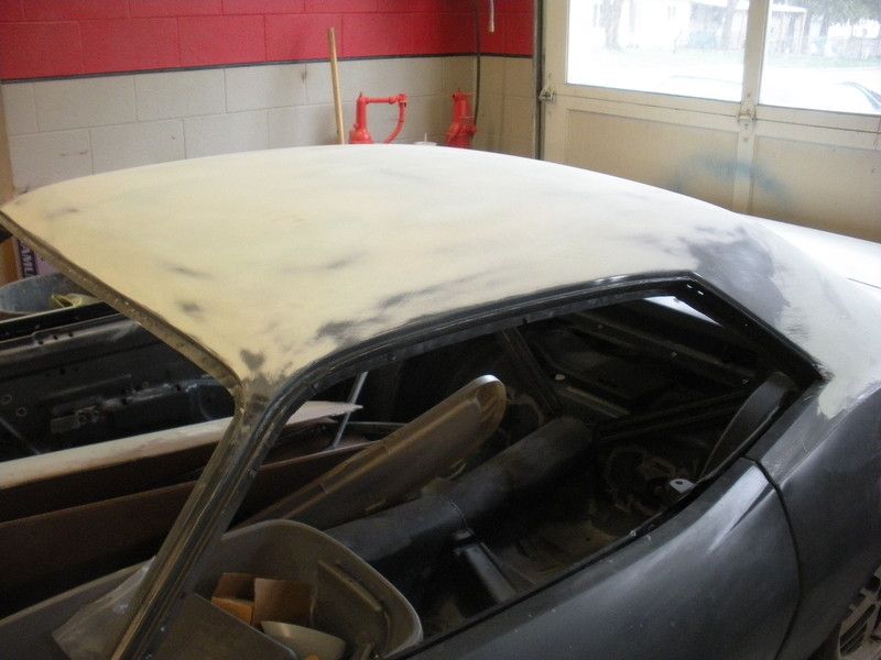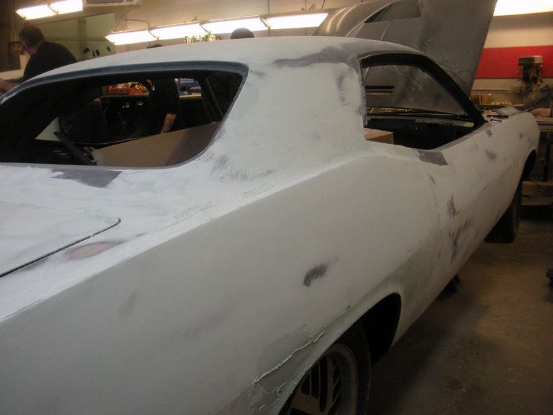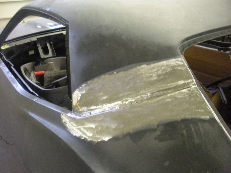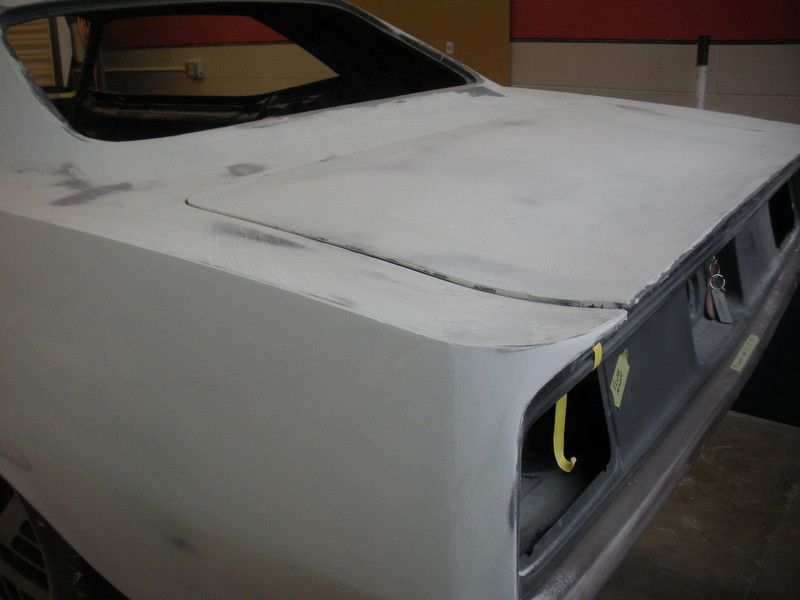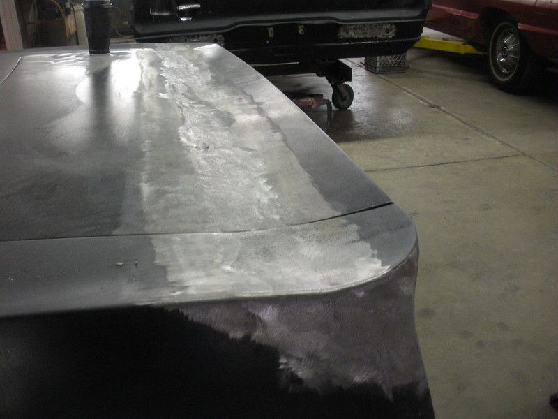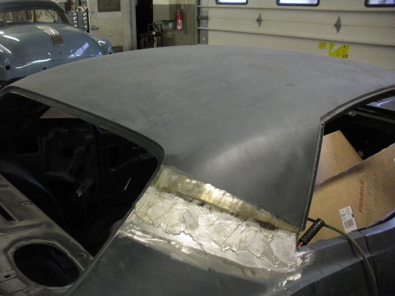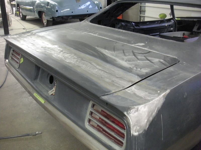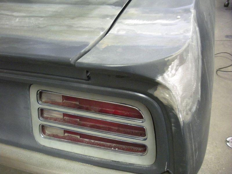 Filler work begins... they did lead/solder for the quarter seam and the spoiler