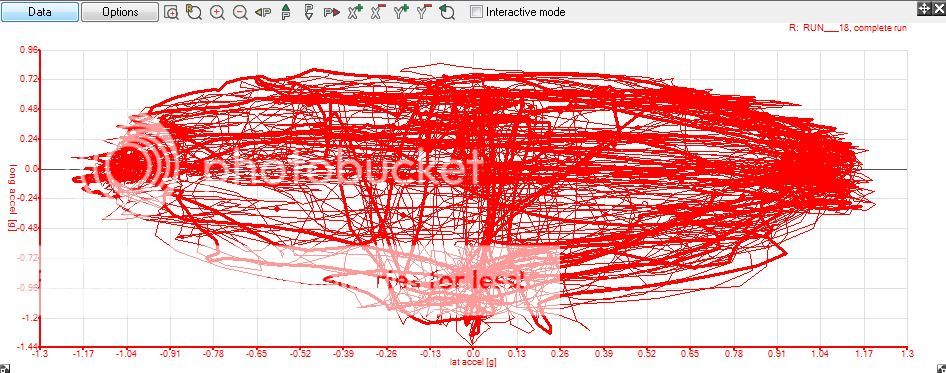 Max Lat about 1.1 G Max Decel about 1.3 G Max Accel about .85 G What to build next? I'm not sure. If I want to play in the OUSCI deal I need to wait for the new rules I really like Hellfire and '69 Camaros. I think I'll enjoy doing nothing for awhile and fix rock chips...... Looking at the data AWD would fix forward bite. :headspin: http://i439.photobucket.com/albums/q...ps8737453d.jpg |