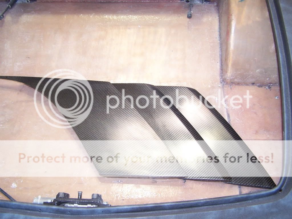 Here are a few random pictures of the carbon fiber panels mocked up on the car after it was primed and assembled in various stages.