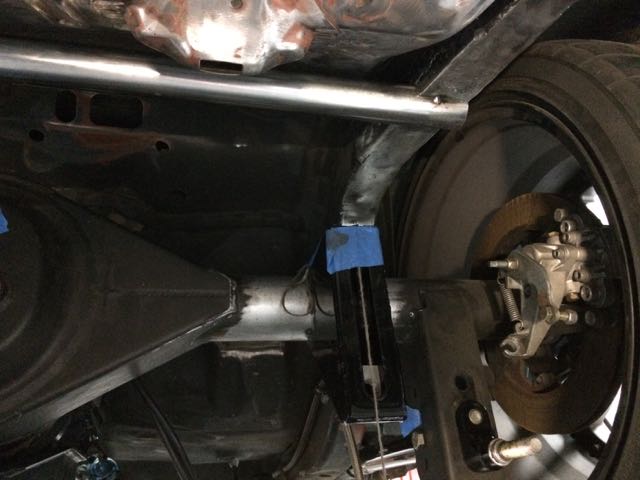 First steps, cut out the old parts and clean up the frame rails... This included a lot of grinding and make a big mess... Pretty much sucked. I also got some metal in my eye. Advise for others, don't use cheap safety glasses. Attachment 61951 Next I tacked the Axle side pan hard mount on the axle per spec Attachment 61952 Attachment 61953 Next was to install the X-member between the frame rails. Here we ran into the first issue. The trunk floor has a slope and interferes with the spec'd 2" tube. Lots of potential solutions were discussed. I decided to move to a 1 3/4 tub and to notch the ends so it hangs slightly below the rails. Main 2 reasons I wanted to do this was was 1 - I wouldn't have to cut the trunk floor. 2 - having the tube hang lower gave me more area to weld the x- member Attachment 61954 Attachment 61955 Next I wanted to ensure the coil overs fit without issue. I wanted to change from a static upper mount to a dog bone adjuster so I wanted to get an idea how hard this would be. Here I ran into another issue. Per spec the pass side coil over hits the pan hard mount on the axle. After discussing with Sutton we decided the best fix was moving the mount in 1/2" on both side of the car. Changing the Panhard length from 31-30" Attachment 61956 After this I started to mock up the sway bar mounts. It took some time to get it 100% straight but I finally got it. By moving the pan hard mounts in the sway bar is extremely tight to fit but it did work. I don't have pics but the mounts on the axle were also tacked out. Main thing I checked were the angles in both the most extreme front and rear mounting holes on the arms. I measured the both to 27 degrees. its a lot of angle but at least they are equal. Attachment 61957 Attachment 61958 Attachment 61959 Last 2 things were to add the support for the pan hard downbar mount and to cut the pan hard itself 1" to fit in the revised position. Overall this was pretty straight forward but it took a lot of time to get the support gusset mitered for the perfect fit Attachment 61960 In the next week or 2 I'll be focusing on the new trailing arm mount and then will focus on the new upper coil over mounts. The latter of the 2 looks like its going to be a real challenge... Hopefully I'm more nervous than I need to be. |