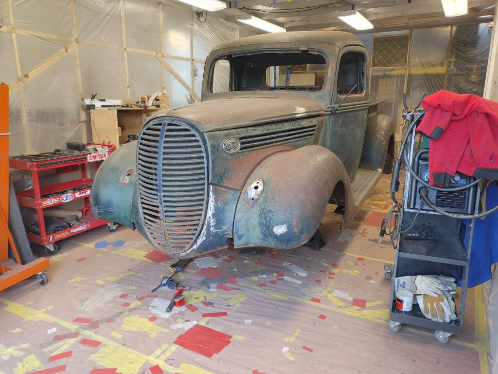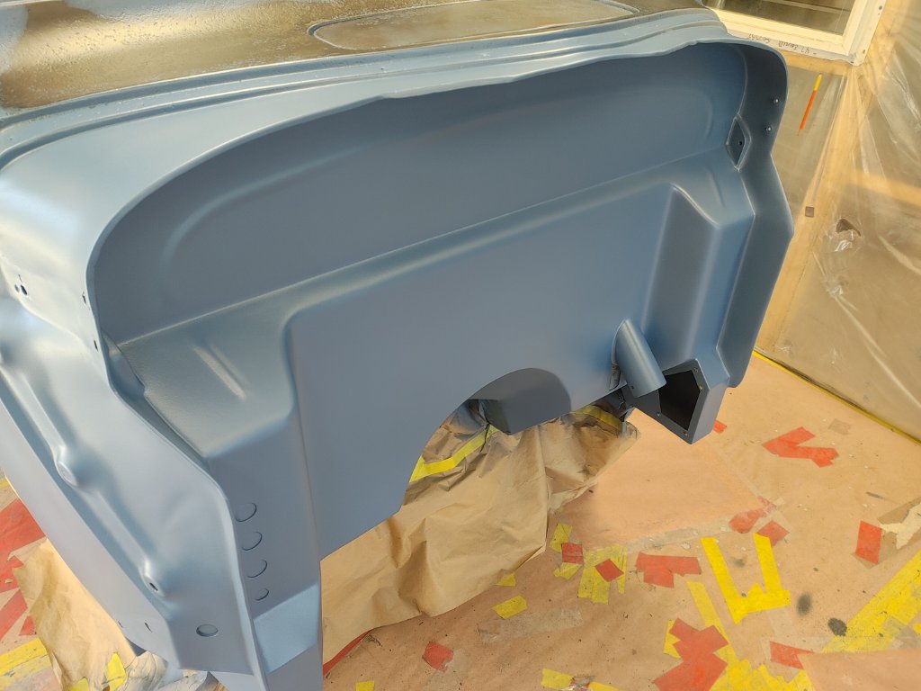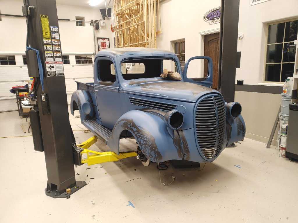 Hi Guys - thanks for the interest!! Long story, but in short, my wife has always wanted an pre-40's truck and a friend was selling this 39' Ford, so we bought it and I started down doing it in parallel with the Camaro. That, of course, wasn't a recipe for success and given that the original plan was to leave the body on the '39 completely alone, I planned on a 4-5 month project if I fully concentrated on it. So , put the Camaro in the garage and focused fully on the truck. Of course the project morphed, but should be done in the next 2 months. Patina Paint job is 90% done, cab is off to the interior guy this week and 90% of the truck has already been test fit. Back to the Camaro in November and going to hit it hard. I have been working with an artist on the artwork for the Camaro Project Name, should have that soon. Otherwise, it's collecting a bit of dust for a couple more months. Attachment 76380 Attachment 76381 Attachment 76383 Attachment 76382 Here is the homemade patina paint job we are doing. Cavalry Blue with colored acids for the patina, with matte clear on top. Yep, I know, I've put clear on top of "rust/oxidation" which will clearly fail someday, maybe soon. We knew it would a science project but Lisa really likes the patina look, she just couldn't love the original green. So after a fair bit of metal work (rust repair, we left some of the dents to , we sandblasted the entire truck, masked off some strategic areas, epoxied the areas that would be blue, sprayed the blue, feathered the edges with a DA, used acids for the patina, then cleared it. |