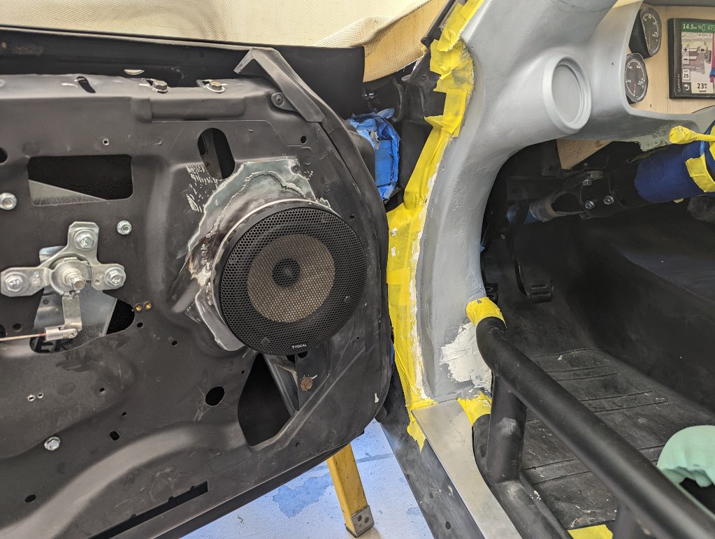 Truck's finally on the road, back to the Camaro! Starting the door panels by mounting the speakers.