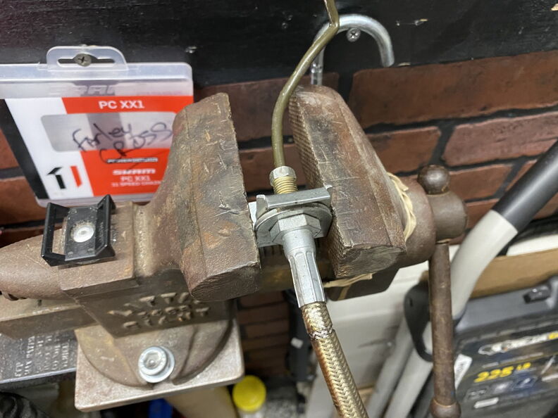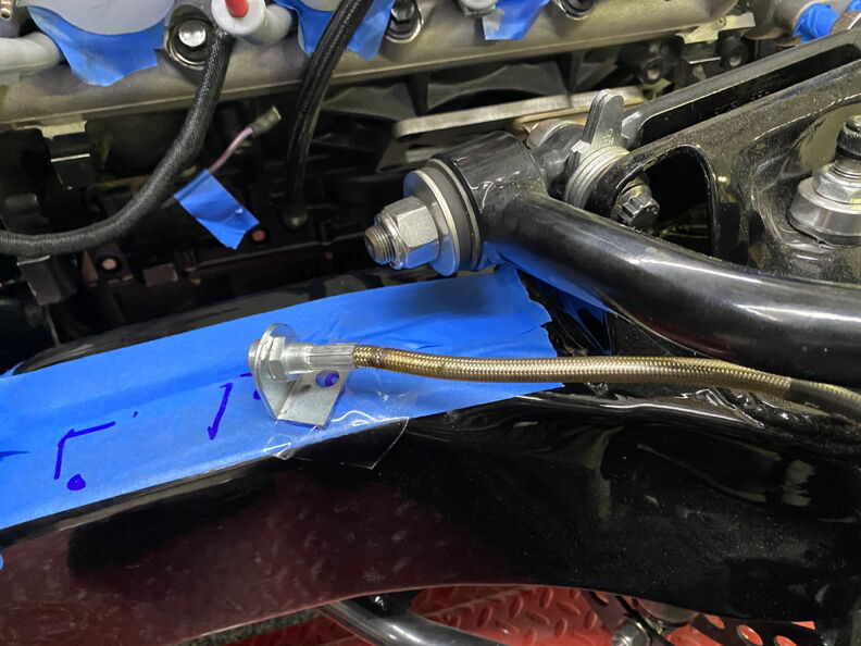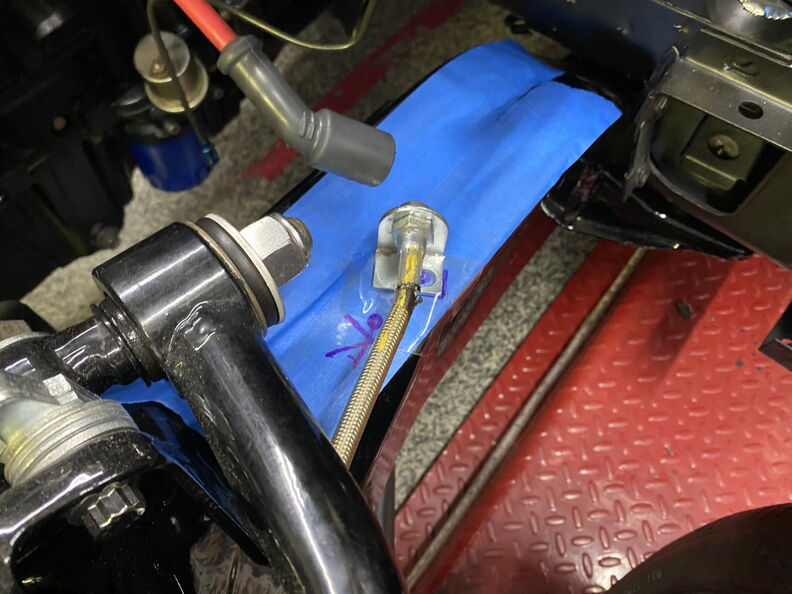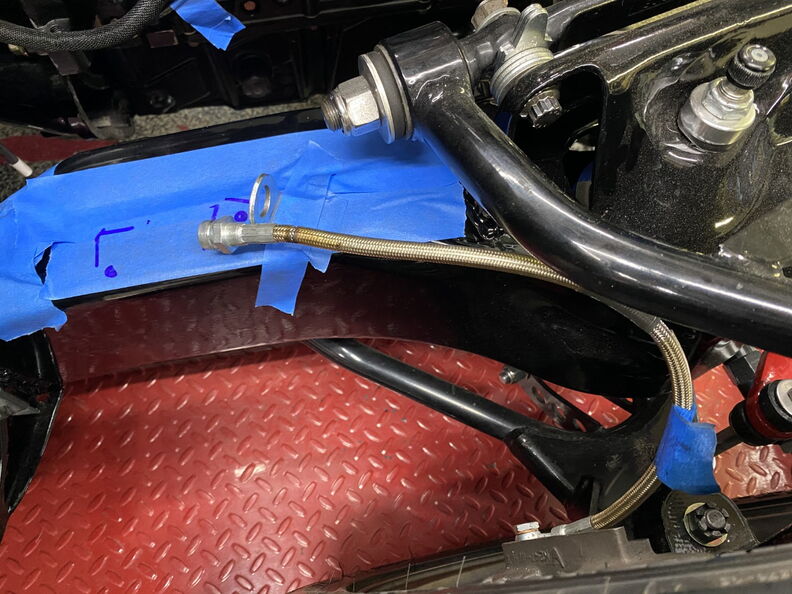 Working on a better location for the brake line transition from hard line to flex lines. Which means I needed to bring the front wheels home so I can run the suspension through it's full travel and make sure the lines are safely and securely mounted.