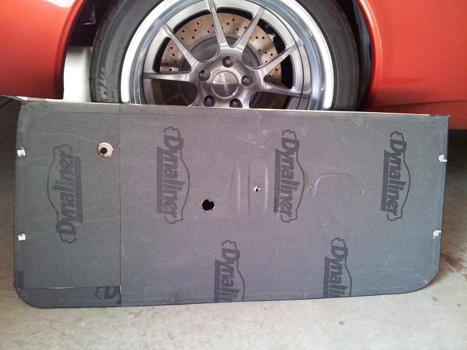 dynaliner installed on the panel. The inside of the door is dynamated. I used one sheet for the door. I didnt feel the need to cover the entire inside of the door. Dynamat is a vibration dampener so this should do. You can tell a difference already just knocking on the door