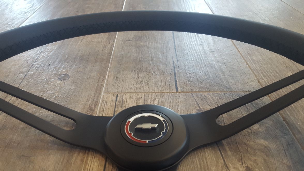 Here is the completed steering wheel back from GP Manufacturing. I am looking for a good place to send this to get a leather wrap if anyone knows of one.