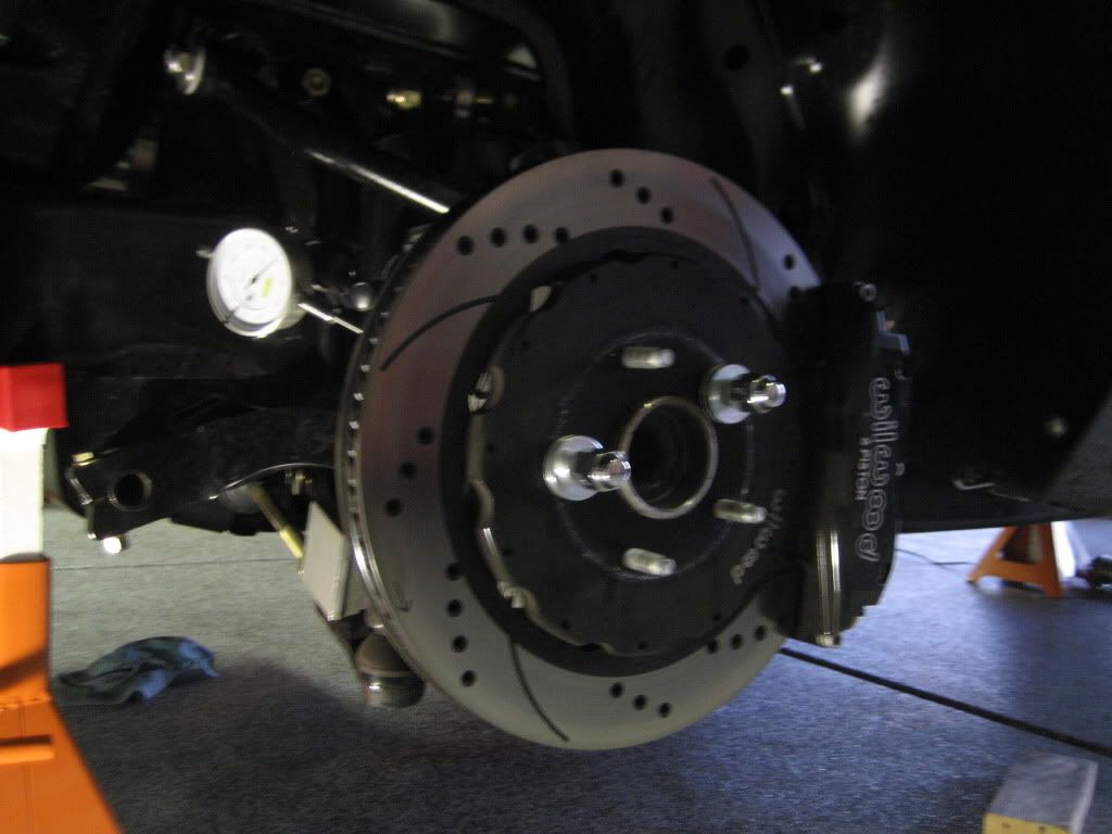 Still off the road waiting on some end links and a caliper. First batch was wrong. My last update included a residual valve to help with pad knock back I had during my first autocross. I've heard that it may not solve my issues. I hope it does, but I wanted to make sure it was the rear causing me issues. I also wanted to take some measurements with a dial indicator to find out just how much axle travel and bearing play I have.